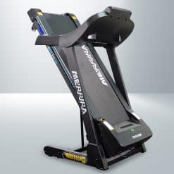 ลู่วิ่งไฟฟ้า รุ่น MAVERIX จาก MERRIRA มอเตอร์ 3.5 แรงม้า ความเร็ว 16 กม./ชม. ปรับความชันได้ 18 ระดับ ขนาดสายพาน 42 x 123 ซม. เชื่อมต่อบลูทูธเพื่อฟังเพลงได้ เชื่อมต่อแอพ ZWIFT เพื่อเล่นเกมส์กับเพื่อนทั่วโลกได้