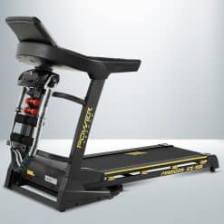 ลู่วิ่งไฟฟ้า รุ่น PANDORA จาก POWER REFORM™ มอเตอร์กำลังสูงสุด 4.8 HP พร้อมเครื่องนวดกระชับสัดส่วน ดัมเบล และ จานทวิส เชื่อมต่อ ZWIFT Run ได้ทันที พื้นที่วิ่ง กว้าง 48 ซม. x ยาว 135 ซม. ความเร็วสูงสุด 20 กม./ชม. ปรับความชันอัตโนมัติ Auto-Incline 20 ระดับ ระบบรองรับแรงกระแทก Spring Shock Absorption 8 จุด ลดแรงกระแทกที่ เข่า และ ข้อเท้า ได้ดีกว่า รับน้ำหนักได้สูงสุด 140 กก. (เหมาะสำหรับผู้ใช้งานน้ำหนักไม่เกิน 105 กก.) พับเก็บได้ ประหยัดพื้นที่ เคลื่อนย้ายได้ง่าย ด้วยระบบ Smart Mobility 360 **หลังใช้งาน 1 ชั่วโมง ให้พักเครื่อง 10-15 นาที ก่อนเพื่อยืดอายุการใช้งาน**