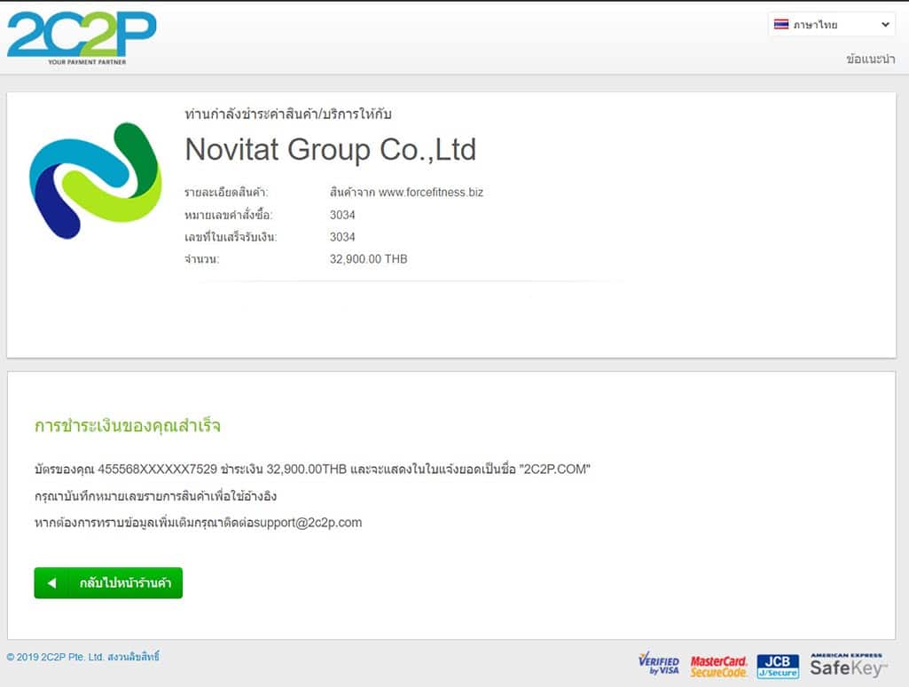 FORCE Fitness มีบริการชำระเงินผ่านบัตรเครดิต